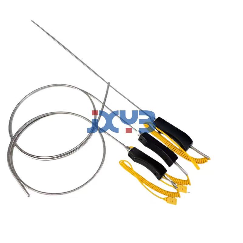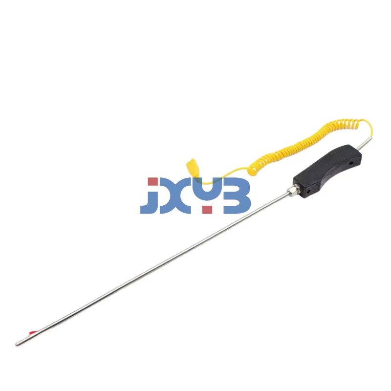 手柄式熱電偶又稱手持式熱電偶專供測量各種形狀的固體介質的表面溫度以及測量液體、氣體的溫度。手柄式熱電偶使用范圍很廣,不受物體表面的形狀限制,外形輕巧,攜帶方便,由于手柄式熱電偶具有直徑小、可彎曲、抗震動、熱響應時間快和緊固耐用、可靠性高等優點,該產品與數字顯示儀配合使用可直接測量并顯示不同生產過程中0~1200℃范圍內的各種介質的溫度,被廣泛用于冶金、化工、紡織、印染、造紙、橡膠、塑料、陶瓷、糧倉等工業部門、企業。