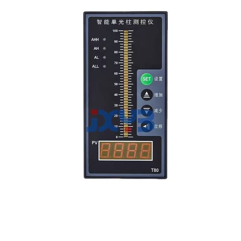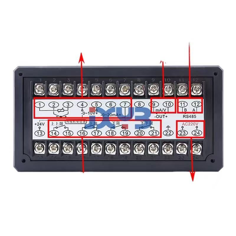 wn****輸入,輸入信號(hào)可編程為 熱電偶,熱電阻,標(biāo)準(zhǔn)電壓,電流信號(hào),mV信號(hào),遠(yuǎn)傳壓力表;●另備有60段折線(xiàn)修正功能,可對(duì)輸入的非線(xiàn)性信號(hào)進(jìn)行修正。 基本信息 中文名 智能數(shù)顯表 測(cè)量控制周期 0.5s 顯示范圍 -1999┅9999 變送精度 ±0.3%F.S±1個(gè)字 目錄 1功能特點(diǎn) 2技術(shù)指標(biāo) 折疊編輯本段功能特點(diǎn) ●儀表輸出采用模塊化設(shè)計(jì),可靈活配置輸出功能; ●***多可配置4個(gè)報(bào)警輸出模塊,每個(gè)報(bào)警輸出的報(bào)警方式和報(bào)警回差可獨(dú)立設(shè)置; ●還可以配置成3個(gè)報(bào)警輸出和1個(gè)變送輸出(或串行通信輸出); ●超強(qiáng)開(kāi)關(guān)電源,在100-240VAC間穩(wěn)定工作; 智能數(shù)顯表 折疊編輯本段技術(shù)指標(biāo) 精度:測(cè)量控制周期:0.5s; 顯示范圍:-1999┅9999; 數(shù)顯表 測(cè)量精度:±0.5%F.S或±0.2%F.S±1個(gè)字,自動(dòng)對(duì)溫漂、時(shí)漂進(jìn)行補(bǔ)償; 變送精度:±0.3%F.S±1個(gè)字。 報(bào)警:報(bào)警輸出接點(diǎn)容量:AC220V/3A(阻性負(fù)載); 傳感器故障繼電器輸出(擴(kuò)展功能)。 其它:具有冷端補(bǔ)償、數(shù)字濾波、打印接口等功能。還具有零點(diǎn)、滿(mǎn)度修正,開(kāi)方運(yùn)算, 傳感器故障處理,6報(bào)警方式、開(kāi)關(guān)量輸入、內(nèi)部定時(shí)器、開(kāi)關(guān)量輸出、大屏顯示等擴(kuò)展功能。 選型表 型譜 說(shuō)明 KK-100 智能數(shù)顯表 外型 尺寸 A/D 橫式160*80*80mm A 橫式160*80*125mm A/S 豎式80*160*125mm B 方式96*96*110mm C 橫式96*48*110mm C/S 豎式48*96*110mm D 方式72*72*110mm F 方式48*48*110mm T 特殊/自定表殼 報(bào)警輸出 B□ B0無(wú)報(bào)警輸出;B1-B4,1-4點(diǎn)報(bào)警 變送輸出 X1 4-20mA輸出 X2 0-10mA輸出 X3 1-5V輸出 X4 0-5V輸出 通訊輸出 P 微型打印機(jī) R 串行通訊RS232 S 串行通訊RS485 饋電輸出 無(wú)饋電輸出 V12 帶DC12V饋電輸出 V24 帶DC24V饋電輸出 供電電源 220VAC供電 W DC24V供電 輸入信號(hào) Sn 見(jiàn)"輸入信號(hào)類(lèi)型表" 輸入類(lèi)型表 參數(shù)提示符 輸入信號(hào)內(nèi)容 參數(shù)提示符 輸入信號(hào)內(nèi)容 tc-K K型 rtd 0-400Ω tc-S S型 1000 Pt1000 tc-E E型 bA1 BA1 tc-b B型 bA2 BA2 tc-t T型 0-50 0-50mV tc-n N型 0-5V 0-5V tc-j J型 1-5V 1-5V P100 Pt100 0-20 0-20mA C100 Cu100 0-10 0-10mA Cu50 Cu50 4-20 4-20mA